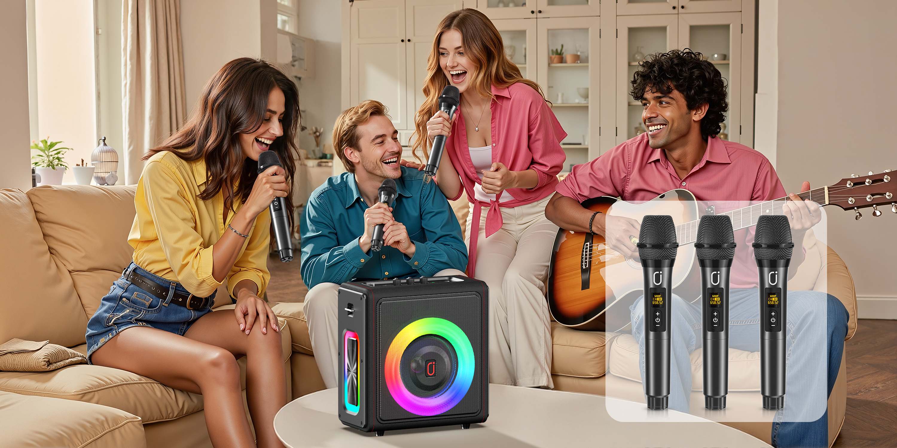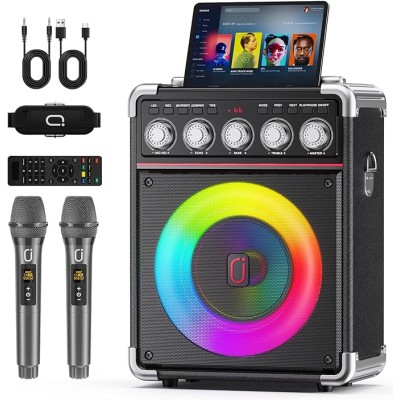 Karaoke Machine with 2 Wireless Mics for Adults Kids